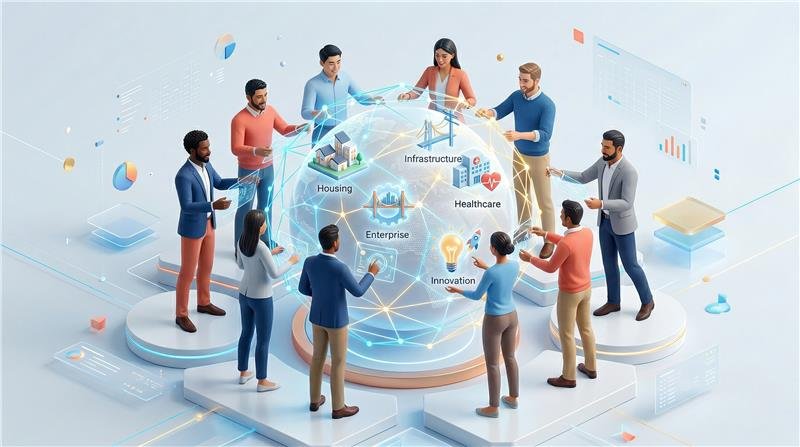 Connecting institutions, networks, and diaspora communities to long-term development themes in housing, infrastructure, healthcare, innovation, and enterprise.